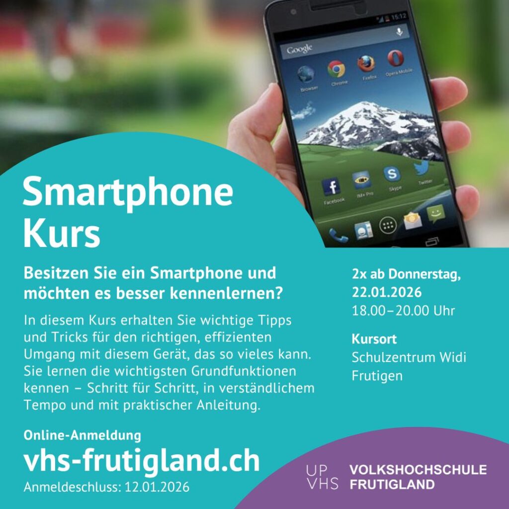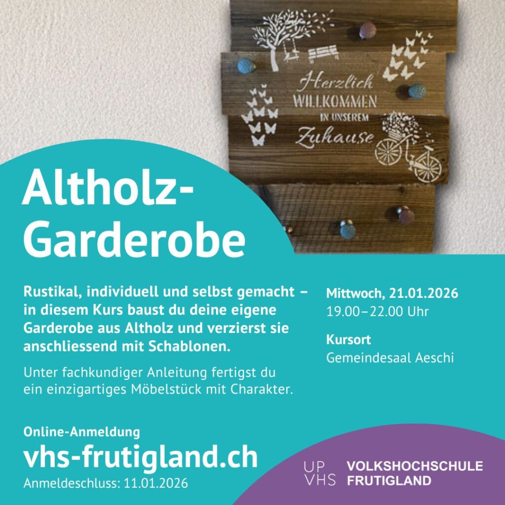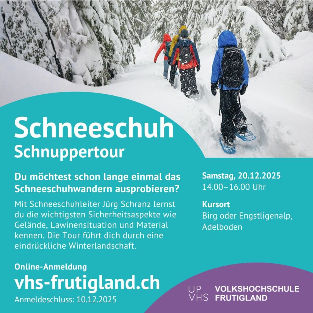 Die Volkshochschule Frutigland dankt Ihnen für Ihr Interesse und das Vertrauen, das Sie uns durch Kursbesuche entgegenbringen.